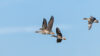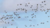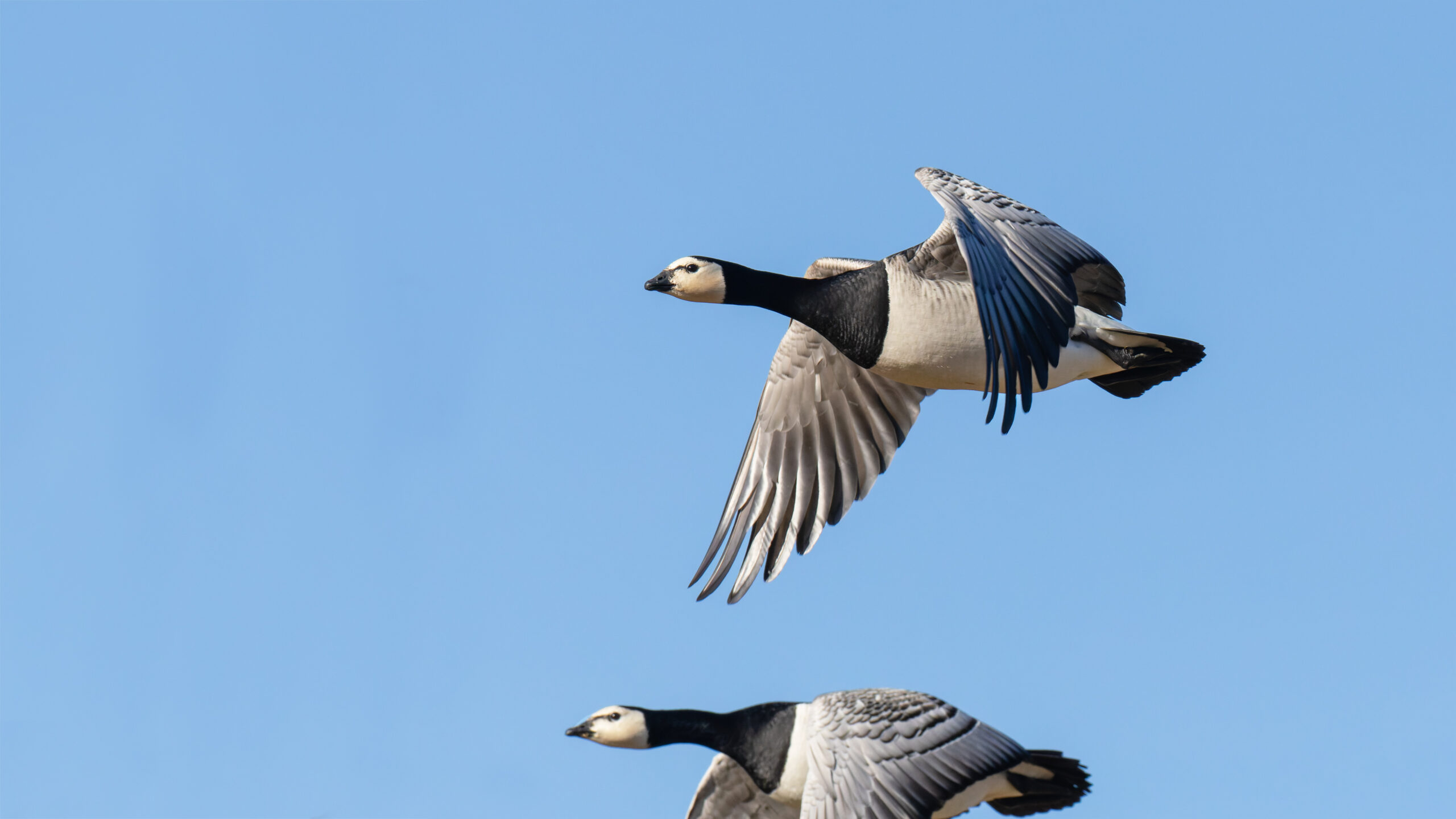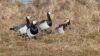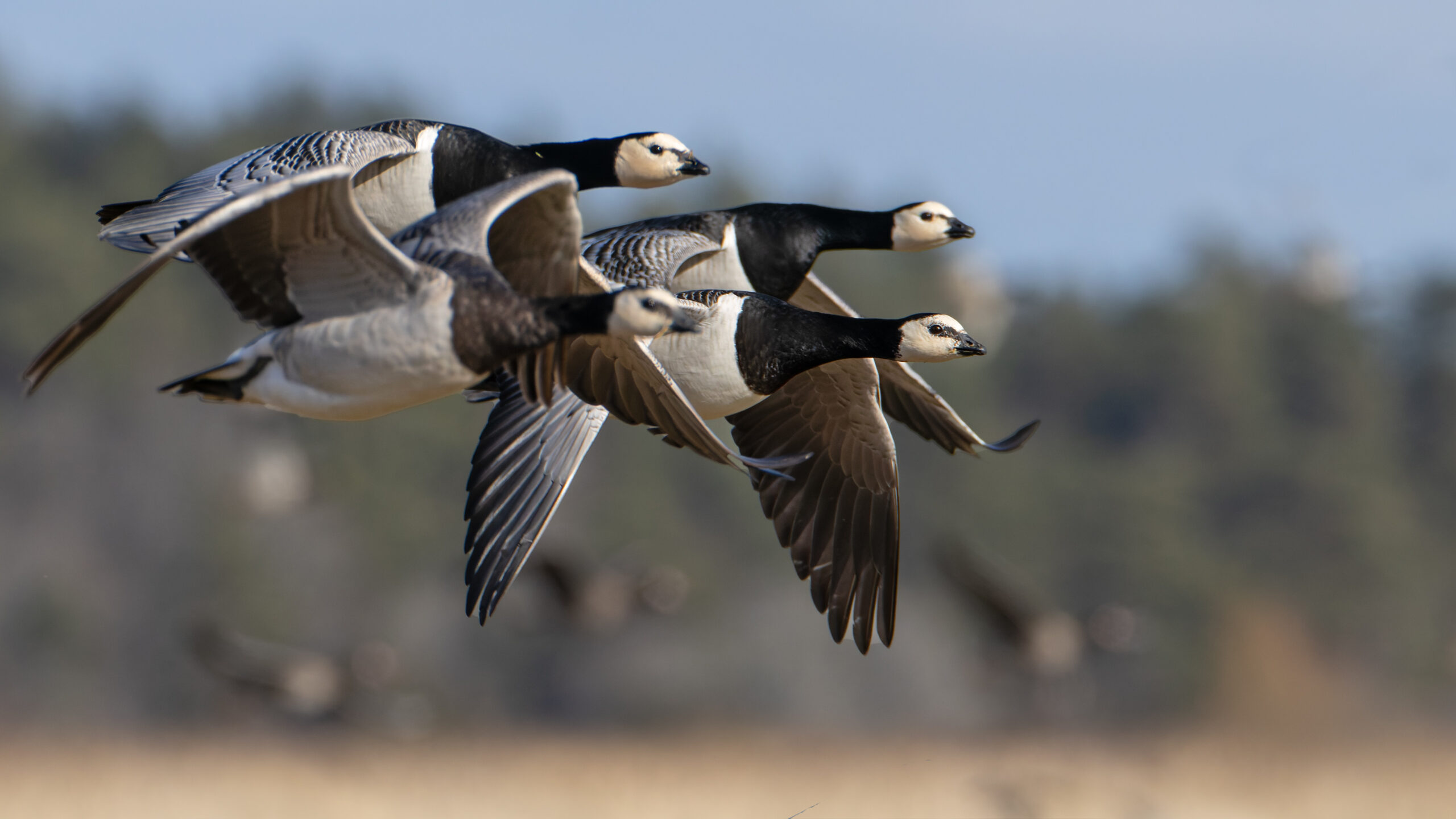 Och så några av dagens bläsgäss. Flocken på första bilden innehåller också några andra gäss. Grågås, skogsgås och en vitkindad gås. Hittar du? Tips: Bläsgässen är tvärsträckade på magen.