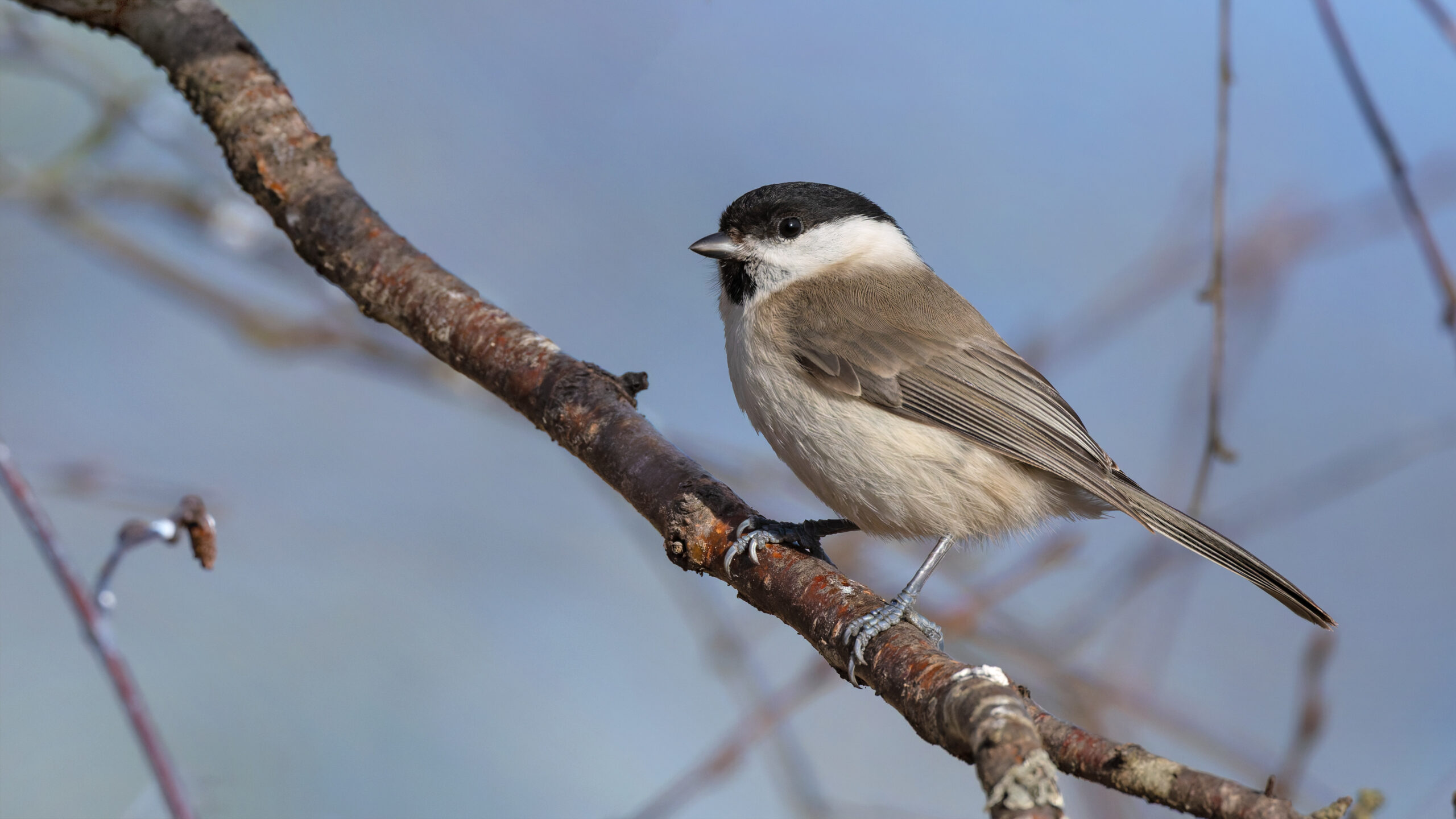 Vandrar längs vallen norrut och kommer fram till ett område som kallas stenarna. Här, mitt i det öppna landskapet, finns en liten mysig hage omgiven av buskar och lite träd. Här hittar man alltid lite småfågel. Så även idag. Entita, rödhake och gulsparv noterar jag samtidigt som jag går bort till plattformen i bortre hörnet. Från den har man strålande utsikt över ängarna och vassområdet utanför. Slår mig ner på plattformens bänk, perfekt för en fika i vårsolen som nu börjar värma lite grann. Ett av vårens första tranpar står där ute. Ibland trumpetar de ljudligt. Låter som de vill hälsa våren men förmodligen är det för att markera sitt revir gentemot andra tranor.